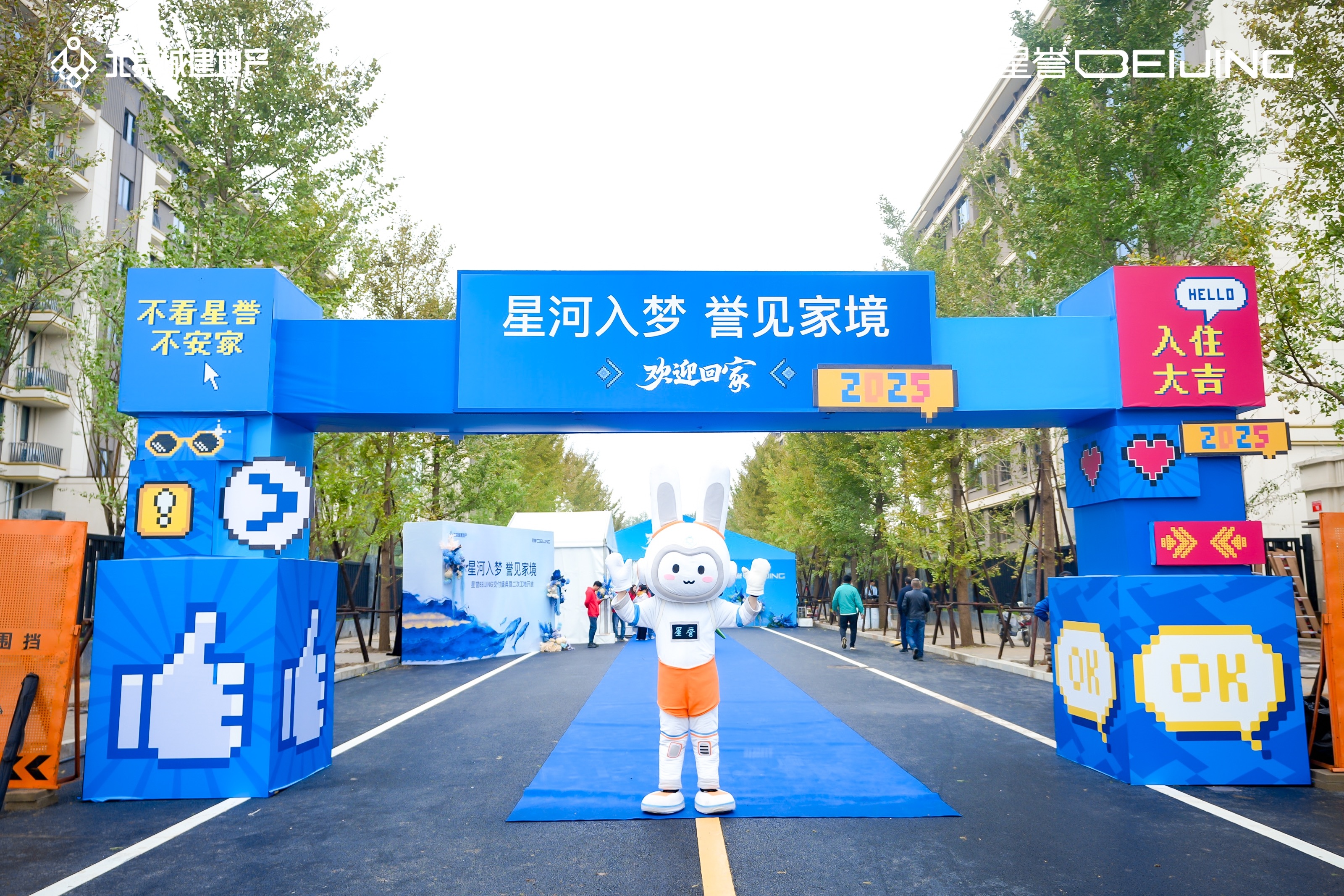 “星河入梦 誉见家境”交付盛典暨二次工地开放活动在星誉BEIJING项目现场隆重举行。交付当天,蓝色地毯铺就归家之路,舞狮灵动迎宾,“财神爷”送上彩票寓意“鸿运当头、财源广进”,“摇铃送花”仪式更是让归家之旅充满暖意。业主们穿过蓝色迎宾地毯,看到每一户入户门都系着精致的蝴蝶结丝带,仿佛等待被拆开的巨型礼盒,期待感与仪式感瞬间拉满。屋内的“步步登高梯”、柴火堆、欢迎标语、精致装饰,以及窗明几净的空间,都无声地诉说着对家人归来的期盼。最后,工作人员送上“金玉满堂”玉米与品牌锅具三件套,为这场温情与希冀交织的归家之旅画上圆满句号。